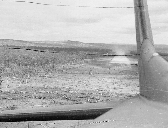 All day on October 4th, the natives around Wanigela Mission worked like beavers cutting a strip though the kunai grass big enough for us to land transports. The next morning we turned the corner in the New Guinea war when we started flying a battalion of Australians to Wanigela from Milne Bay. By nightfall we had landed the whole battalion of approximately 1000 men and, in addition, about a hundred American engineer troops from Port Moresby, to put the strip in shape for bigger operations later on. No Jap troops were encountered and no Jap aircraft flew over the area all day. As far as we could find out from the natives, the Nips had no idea that we were on the north coast of New Guinea.