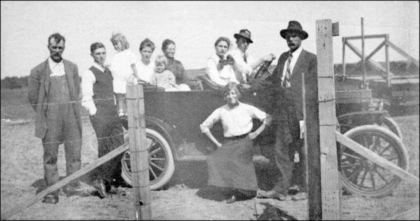 Landau’s family on home stead about 1917; Five of their nine kids in photo
