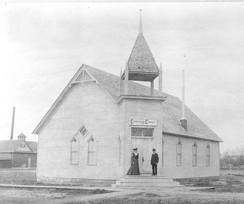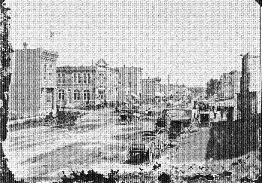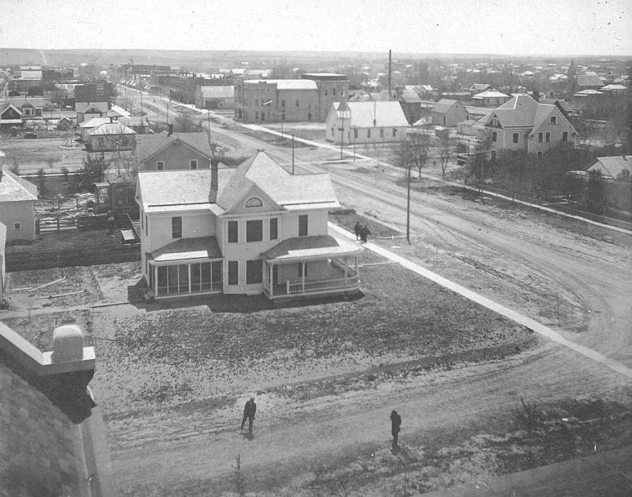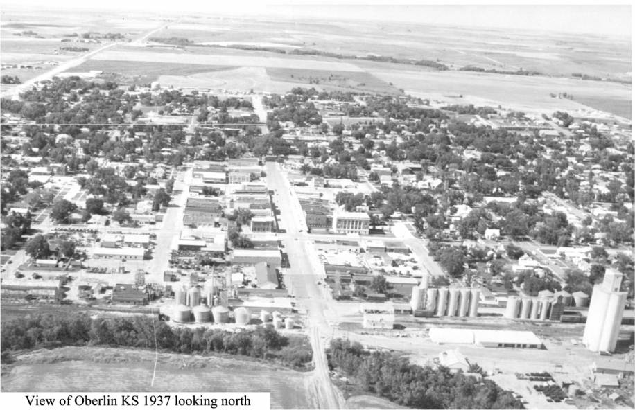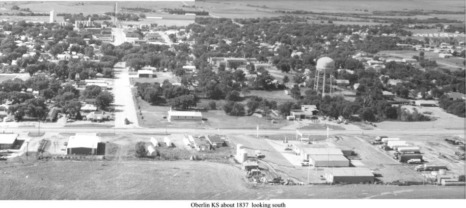 Oberlin looking NW from top of High School Grade school at left Water Tower “Stand Pipe” right