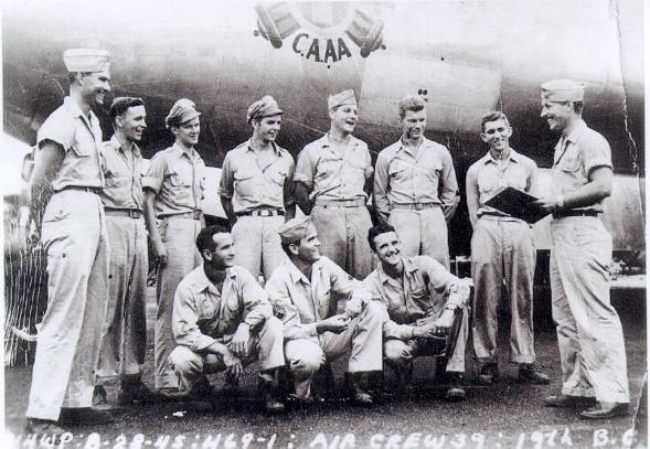 Ian ("Ike") Boggs; Kneeling, Al Baldwin, Tail-gunner, T/ Sgt