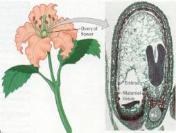 remains within tissues of the mother plant and is fertilized there. In plants,