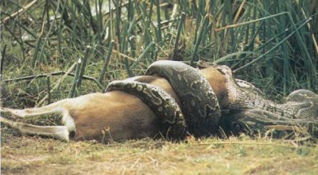 prey in this case. In this amazing scene, a rock python is beginning to ingest
