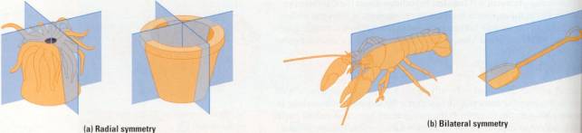 tissues; radial versus bilateral body symmetry; presence or absence of a body