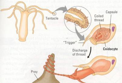 and tentacles with cnidocytes. The body is either a sessile polyp or floating