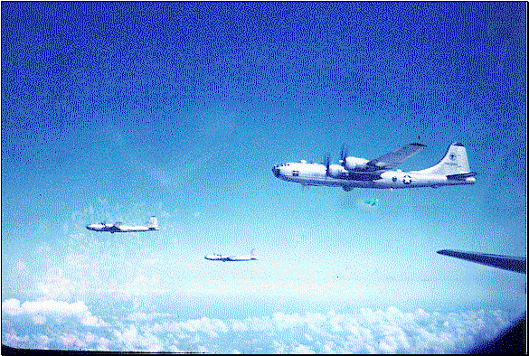 One of the 28th Bomb Squadron B-29’s inbound to the target.