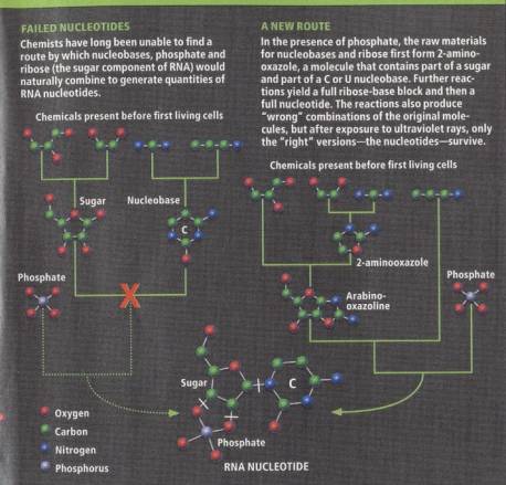 demonstrating that nucleotides can form from spontaneous chemical reactions. He