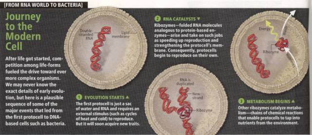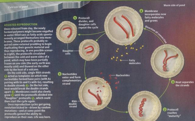 protocells to start reproducing, evolution kicked in. In particular, at some point some of the RNA sequences mutated,